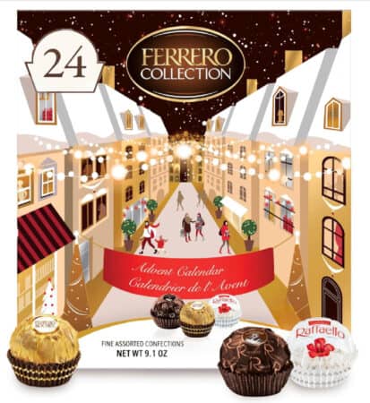 A premium 24-day Ferrero Collection Advent Calendar featuring assorted chocolates: Ferrero Rocher, Raffaello, and Rondnoir. This gourmet assortment makes a perfect holiday gift, ideal for sharing, gift baskets, and festive celebrations as you count down to Christmas. Save 5%