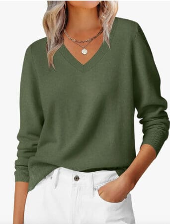ANRABESS Womens Long Sleeve V Neck Sweater