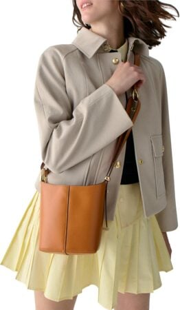 This trendy leather mini bucket bag would be a very special gift. The classic amber color means it can be styled with any outfit and has enough room to store a phone, wallet, as well as smaller items like lip balm, mascara, her new car keys, and hand sanitizer.