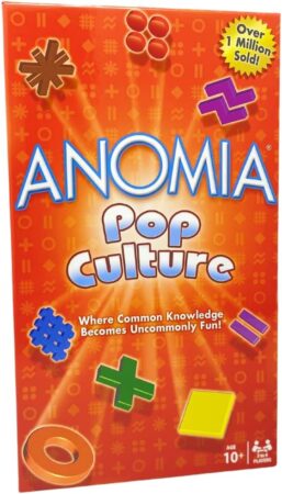 Anomia Pop Culture Edition is a fast, laugh-out-loud party game where quick thinking meets pop-culture chaos. Each card displays a category — like TV shows, celebrities, brands, or movies — and when two players reveal matching symbols, they race to shout out an example that fits the other person’s category first. The pressure of the moment makes even the most obvious answers hilariously hard to recall, which is why it’s such a hit for groups.