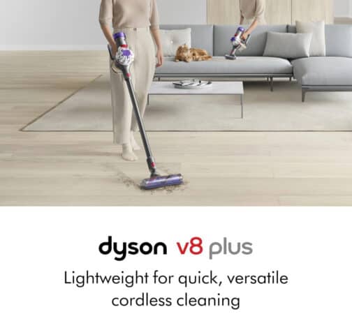 This lightweight cordless vacuum delivers up to 40 minutes of fade-free suction and features two power modes for everyday or intensive cleaning. It deep-cleans all floor types while automatically de-tangling long hair and pet hair. It includes three versatile attachments, a wall dock, and a charger, and easily converts to a handheld for cars, stairs, and upholstery. Quiet, powerful and perfect for an apartment.
